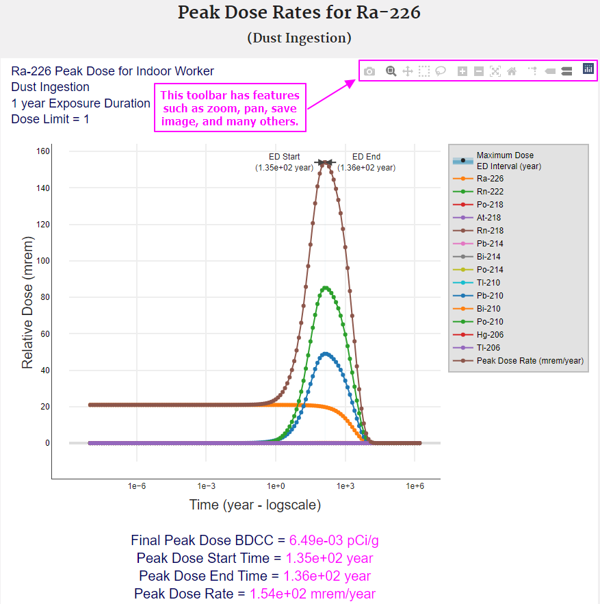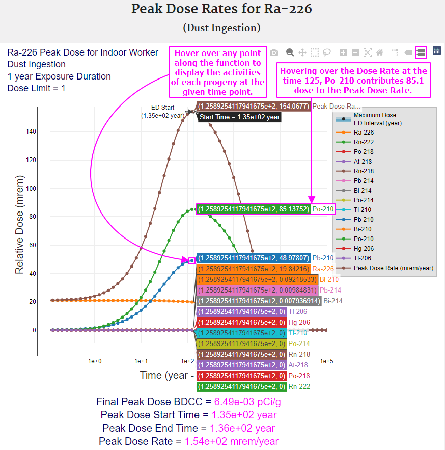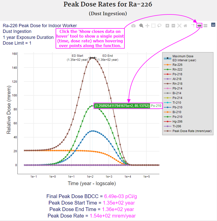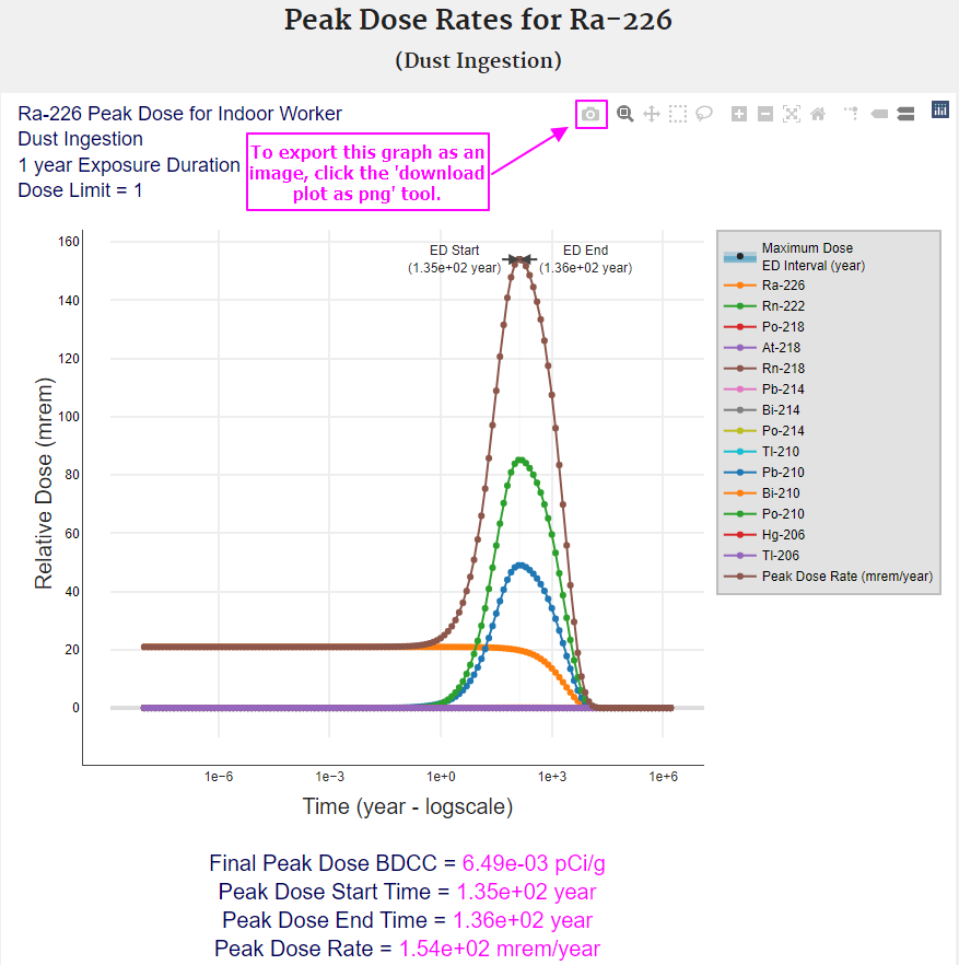 2.2.1 BDCC Output Option #1: Assumes period of peak dose (with decay and progeny ingrowth)(Peak BDCC)