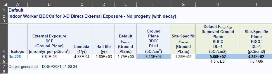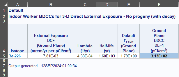 When the secular equilibrium BDCC output option is selected, the BDCC Calculator now gives the option to show the individual progeny contributions for the BDCC (and dose) output. When the option to display progeny contribution is selected, the BDCC Calculator output gives the secular equilibrium BDCC and the individual progeny BDCCs in separate tables.